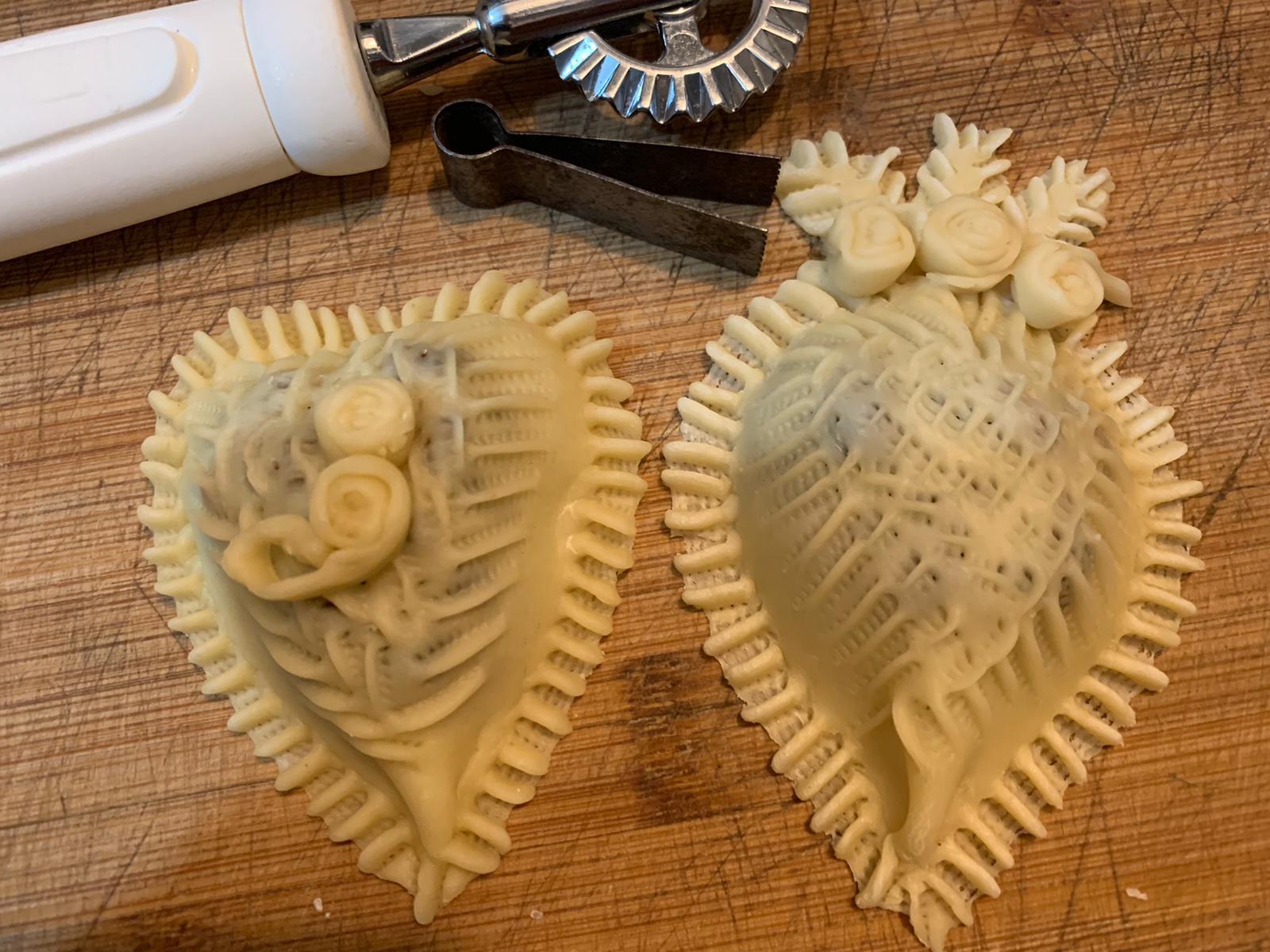 Sono dolci tipici natalizi, veri e propri merletti ripieni di uva passolina e vino cotto o di pasta di